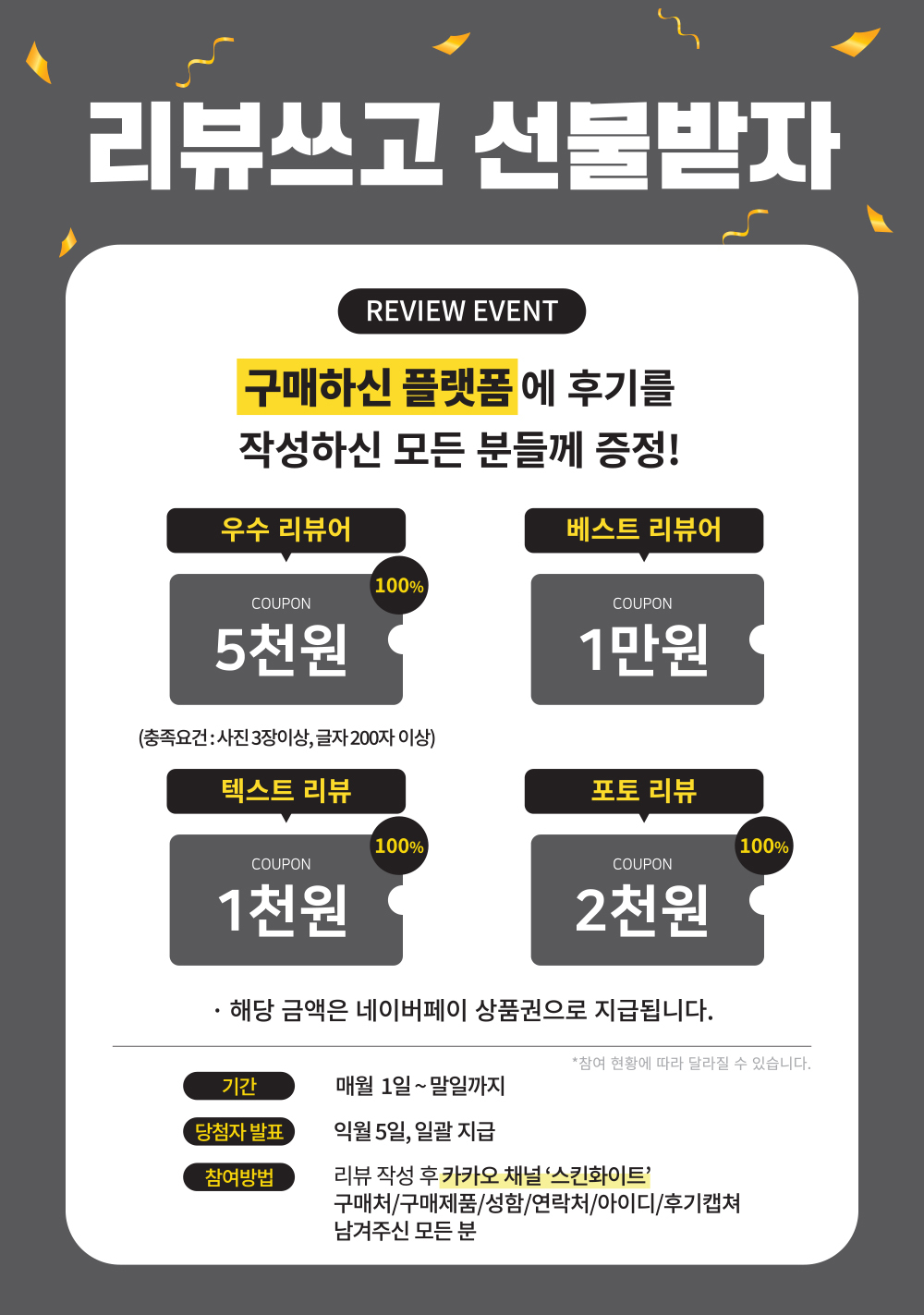 이벤트 적용 및 사은품 증정은 장바구니에 담아두신 시점과 관계없이 결제 당시 사은품으로 증정됩니다.